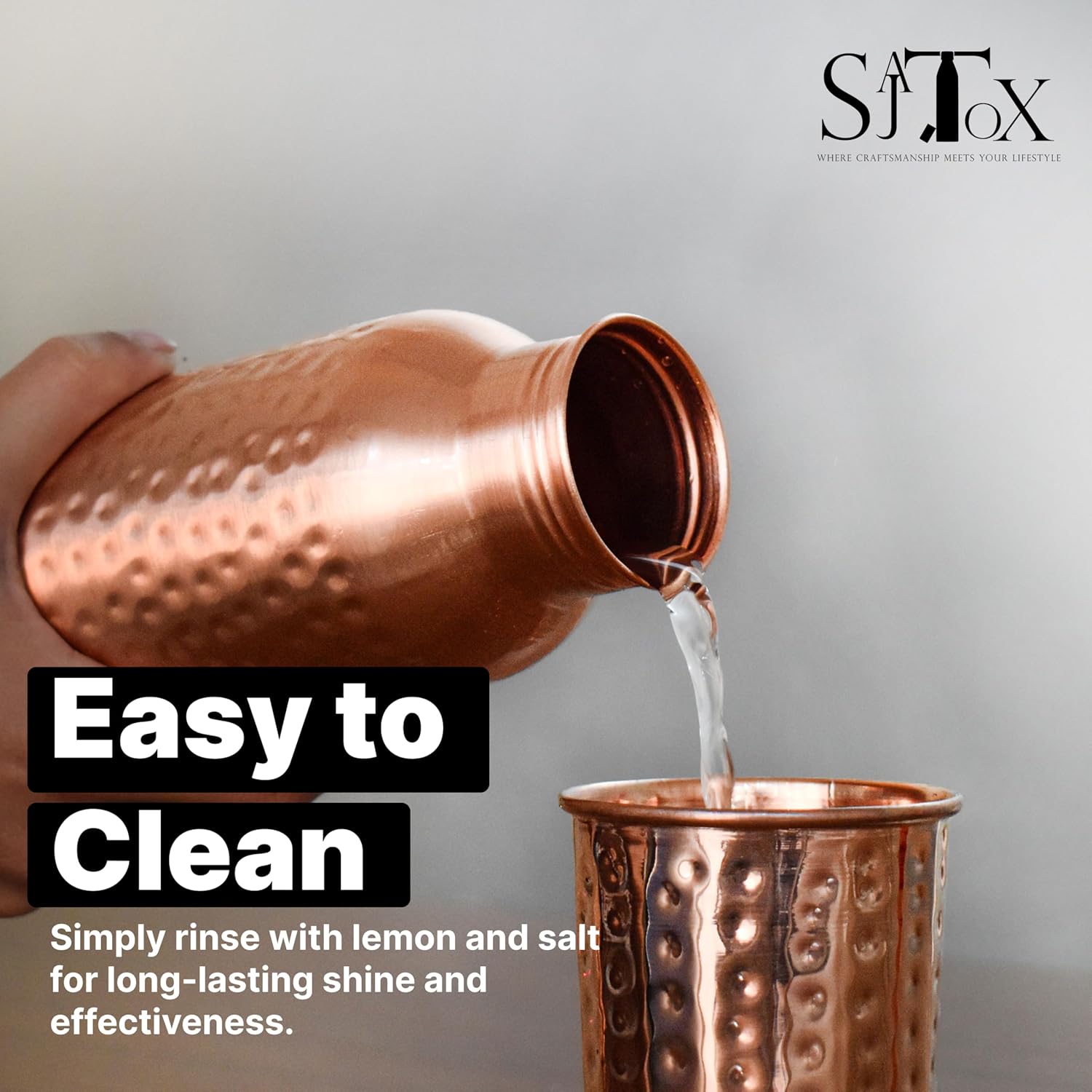 | Product Care Instructions | Cleaning Instructions: Copper can also be cleaned by rubbing it with salt, fresh lemon and tamarind paste. It can also be cleaned with salt or baking soda. Avoid harsh scrubbers and use a soft sponge to clean the outer surface and a soft brush to clean the inner surface. |