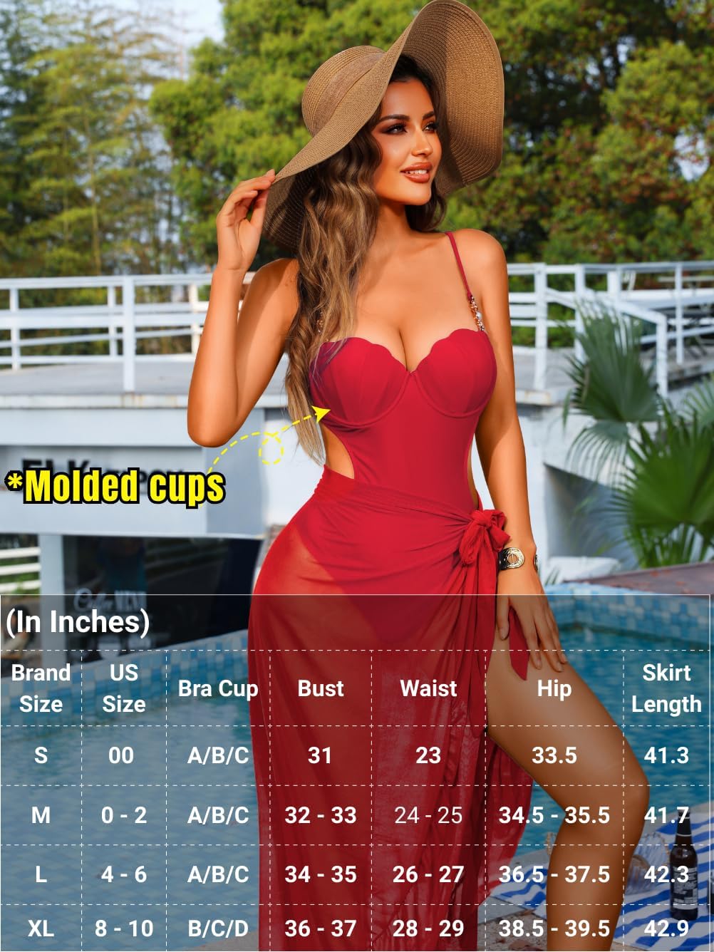 #Product's Q&A: Q: Is this material comfortable? A: Absolutely, this swimsuit is crafted from lightweight and breathable fabric, ensuring exceptional comfort and skin-friendly. Q: Will this swimsuit shrink after washing? A: No, it is designed to maintain its size and color even after washing. Q: Does this product have underwire in the chest area? A: Yes, it features underwire for added support and shaping in the chest region. Q: Is there padding in the chest area of this product? A: Yes, the chest area is padded for extra comfort and shaping. Q: How many items are included in the product? A: The product includes 1 set of swimsuit. #Washing Guidelines: Hand wash only. Use cold water, and kindly avoid prolonged exposure to bleach.